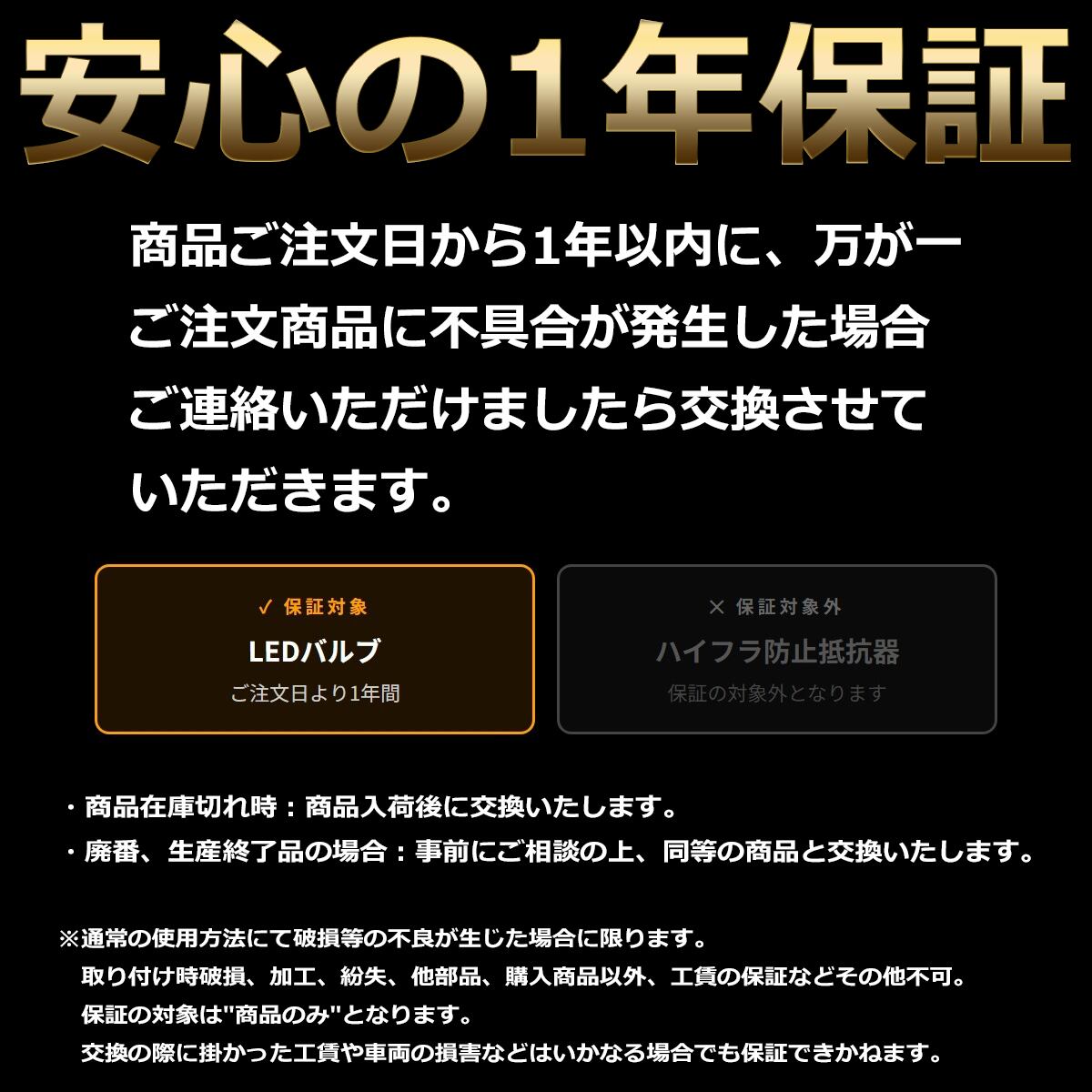 ※取り付け破損、紛失、他部品、購入商品以外、工賃の保証などその他不可