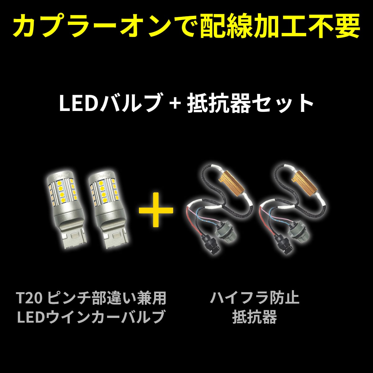 LED ウインカー T20 ピンチ部違い兼用 2個 + ハイフラ防止抵抗器 2個 セット バルブ 車検対応
