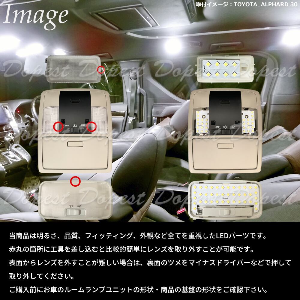 【必ずお車のセンター・リアのランプがそれぞれ1灯式であることをご確認下さい】純正LEDルームランプ(電球の取り外しが出来ないタイプ)の場合はお取り付け出来ませんのでご注意ください。取り付けの際はルームランプユニットにマスキングテープを貼るなど保護対策をお願いします。パーツのお取り付けは自己責任でお願いします。パーツを取り付けたことによる事故・不具合等の一切の保証は致しかねます。