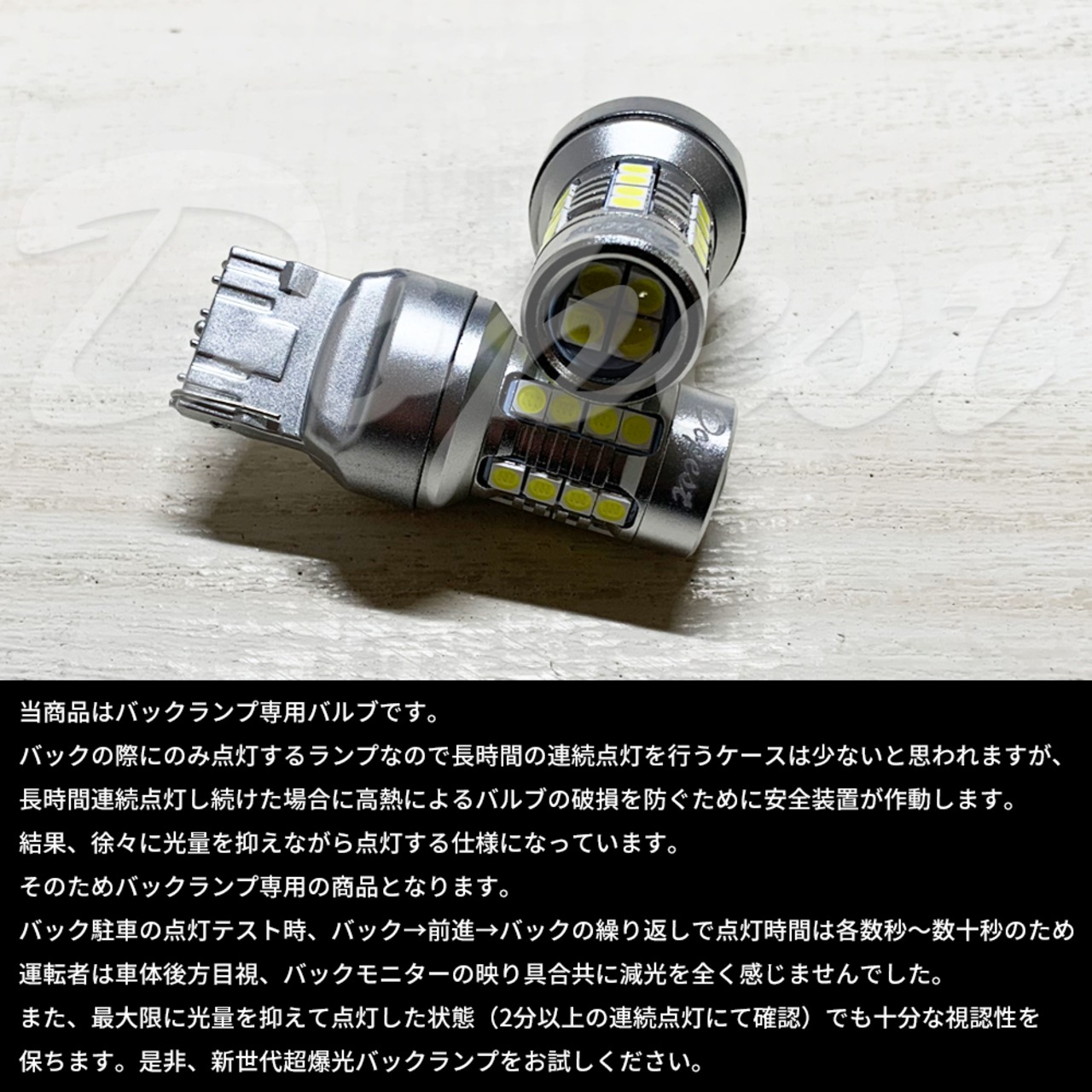 バルブの限界の光量で発光するため、バックランプ以外の長時間点灯する箇所にはお取り付け出来ません。